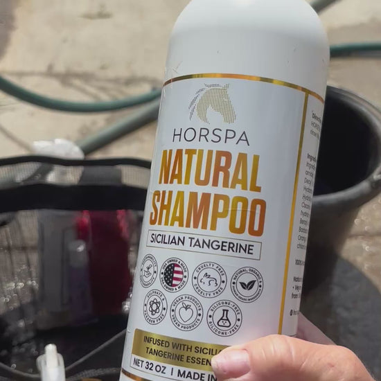Give your horse's coat the natural care it deserves with HORSPA NATURAL HORSE SHAMPOO - Sicilian Tangerine. This all-natural shampoo is bursting with enriching ingredients designed to gently cleanse and rejuvenate dry, dull coats. Our mild formula effectively cleans without irritation or stripping essential oils, leaving every coat healthy, shiny, and incredibly soft. It's perfect for all pets and animals, ensuring a lustrous finish every time.