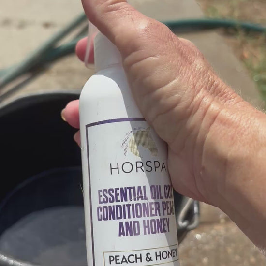 To create your grooming spray, mix 2 oz of concentrate with 32 oz of water in a spray bottle. Shake well before each use. You can spray this directly onto your horse 's coat while grooming or use it to wipe away sweat after exercise.