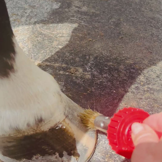 Shake before use. Apply to the entire hoof horn, sole and frog.