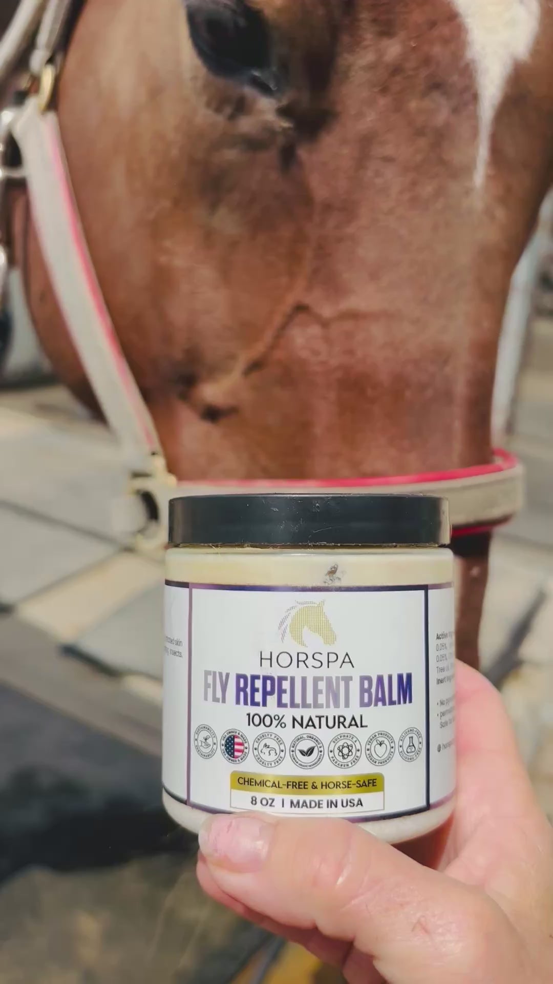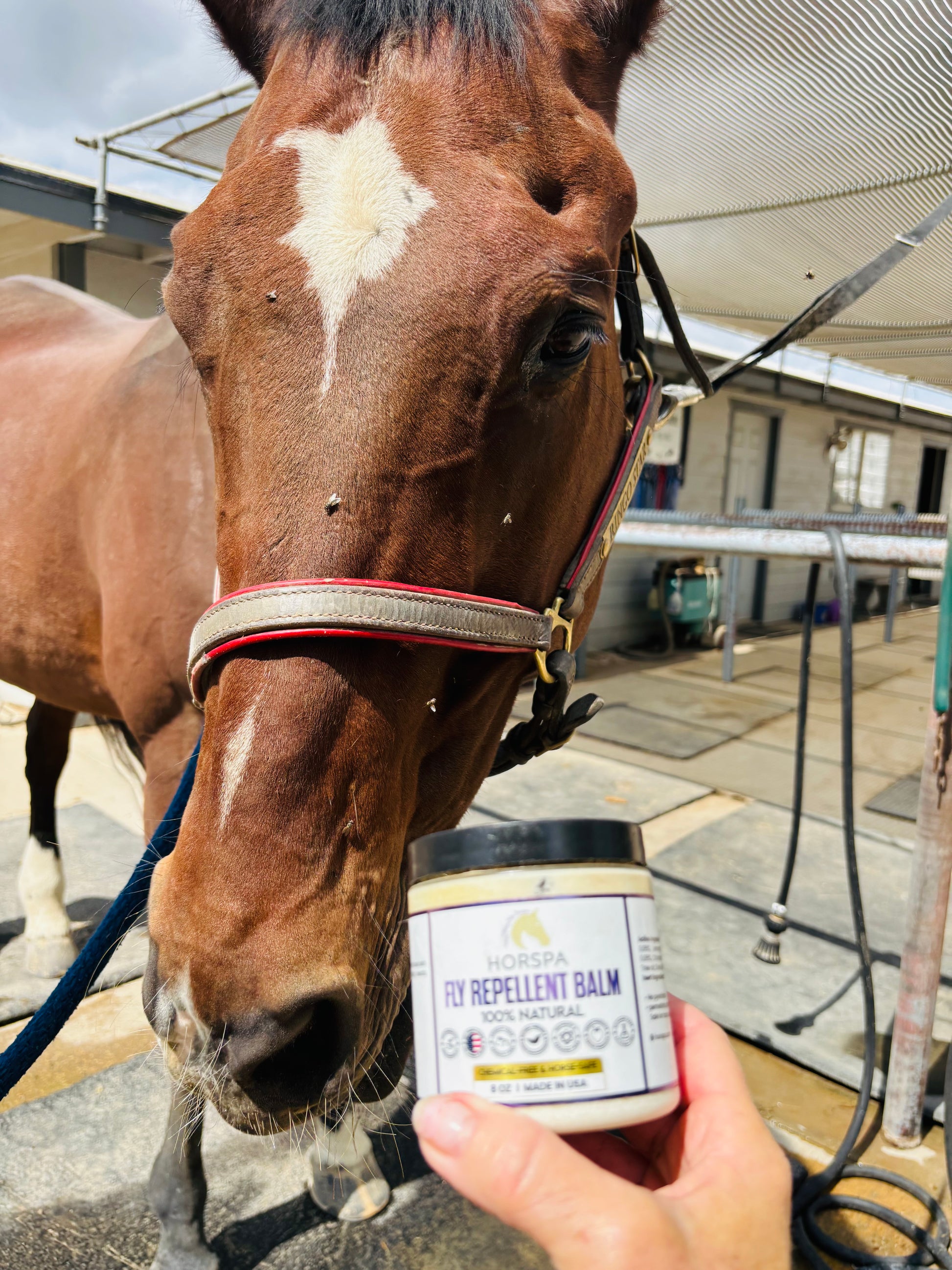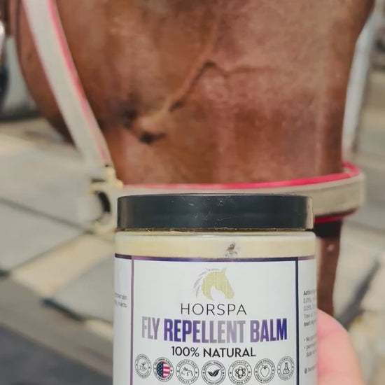Horspa Fly Repellent Balm is formulated using a gentle blend of ingredients, including botanical oils, to repel flies, gnats and other flying insects on horses. Its 100% Natural ingredients.